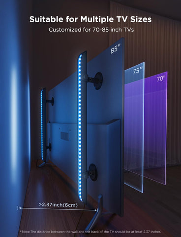 • Suitable for Multiple TV Sizes & various placements : The Govee tv led backlights fit TVs from 70 to 85 inches. The led light bars can be attached to the back of the TV, lay flat on TV cabinets, or inserted into the bases to freely stand