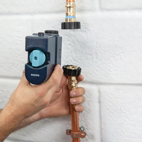Protect your home from leaks, water damage and wasted water with the Moen Flo Smart Water Monitor & Shutoff — a smart, connected system that monitors your entire water supply, detects leaks (even small ones), and automatically shuts off water when danger is detected. Included with 2 Smart Leak Detectors, it gives you both internal plumbing oversight and environmental leak detection (e.g. around sinks, appliances, basements).