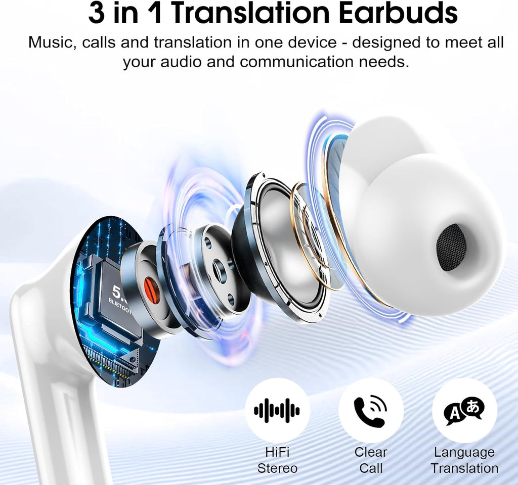 Csasan Ai Translation Earbuds Real Time, Simultaneous Interpretation Translator Earbuds with 6 Translation Modes/164 Languages, No Subscription Translatior Headphones